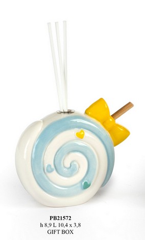 Bomboniere Battesimo Lombardia : Profumatore Lecca Lecca celeste cm. 8,9 in porcellana con astuccio. Il soggetto è ordinabile a gruppi di 6.