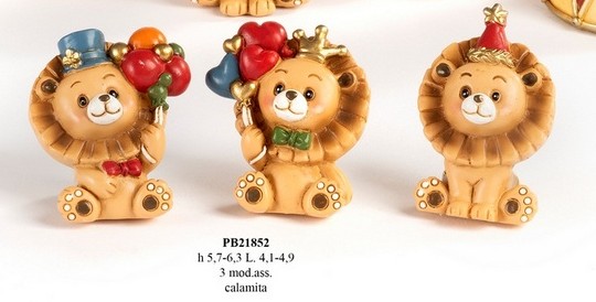 Bomboniere Battesimo Torino : Leoncino del Circo spiritoso calamita in resina cm. 6,3. Il soggetto è ordinabile a gruppi di 24 e sono 3 assortiti.