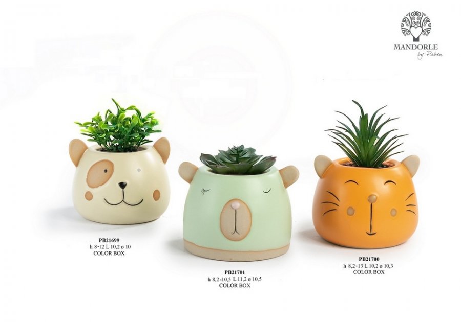 Bomboniere Comunione Toscana : Vaso Testa di Orso con pianta cm 11,2 in porcellana-plastica con astuccio. Il soggetto è ordinabile a gruppi di 3.