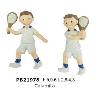 Bomboniere Comunione Trento : Ragazzo tennista spiritoso calamita in resina cm. 6. Il soggetto è ordinabile a gruppi di 24 e sono 2 assortiti.