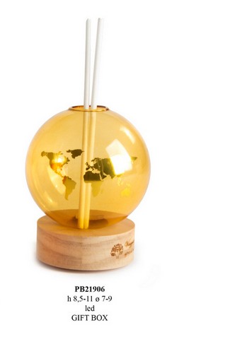 Bomboniere Matrimonio Calabria : Profumatore con planisfero ambra con led in vetro-legno cm. 11 con astuccio. I soggetti sono ordinabili a gruppi di 2.