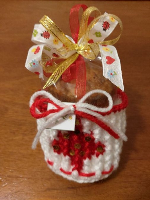 Cestino realizzato all'uncinetto, ideale come dono per gli amici, colleghi, maestre o per decorare la tavola delle feste.