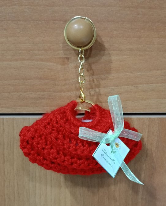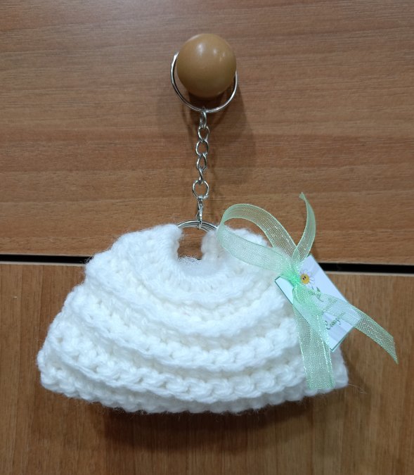 Portachiavi borsina all'uncinetto, realizzata interamente a mano.