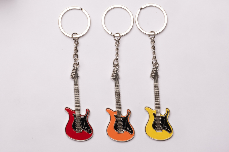 Bomboniere Compleanno Milano : Portachiave chitarra. Il soggetto è ordinabile a gruppi di 12 e sono 3 assortiti.