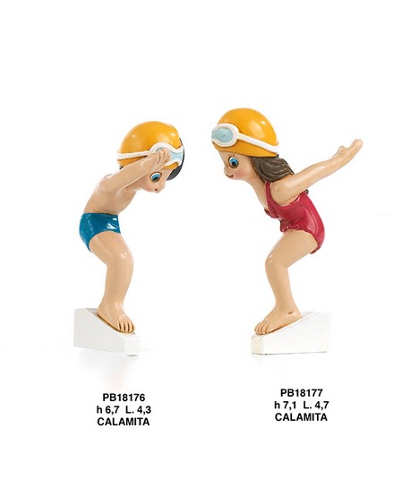 Bomboniere Comunione Monza : Ragazza nuotatrice calamita in resina cm. 7,1. Il soggetto è ordinabile a gruppi di 24.