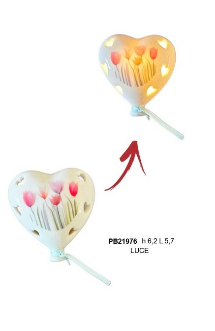 Bomboniere Comunione Roma : Palloncino a cuore con tulipani e luce in porcellana cm. 6,2. Il soggetto è ordinabile a gruppi di 6.