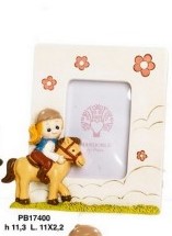 Bomboniere Comunione Roma : Portafoto bimba a cavallo in resina cm. 11,3. Il soggetto è ordinabile a gruppi di 4.