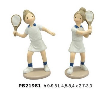 Bomboniere Comunione Trento : Ragazza tennista spiritosa in resina cm. 9,5. Il soggetto è ordinabile a gruppi di 12 e sono 2 assortiti.