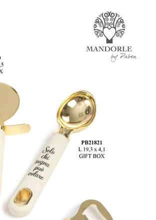 Bomboniere Matrimonio Milano : Paletta da gelato color oro in metallo-plastica bianca cm. 19,3 con astuccio. Il soggetto è ordinabile a gruppi di 3.