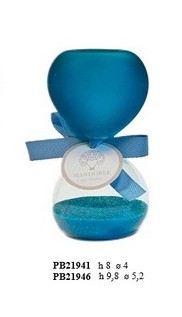 Bomboniere Matrimonio Sicilia : Clessidra azzurra satinata cm. 8 in vetro con astuccio.Il soggetto è ordinabile a gruppi di 6.