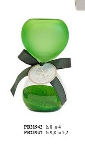 Bomboniere Matrimonio Sicilia : Clessidra verde satinata cm. 9,8 in vetro con astuccio.Il soggetto è ordinabile a gruppi di 4.