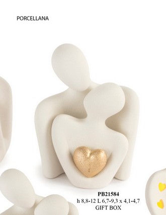 Bomboniere Matrimonio Toscana : Set Innamorati mezz. con cuore st. in porcellana cm. 12 ( 2 sogg. ) con astuccio. I soggetti sono ordinabili a gruppi di 3 st.