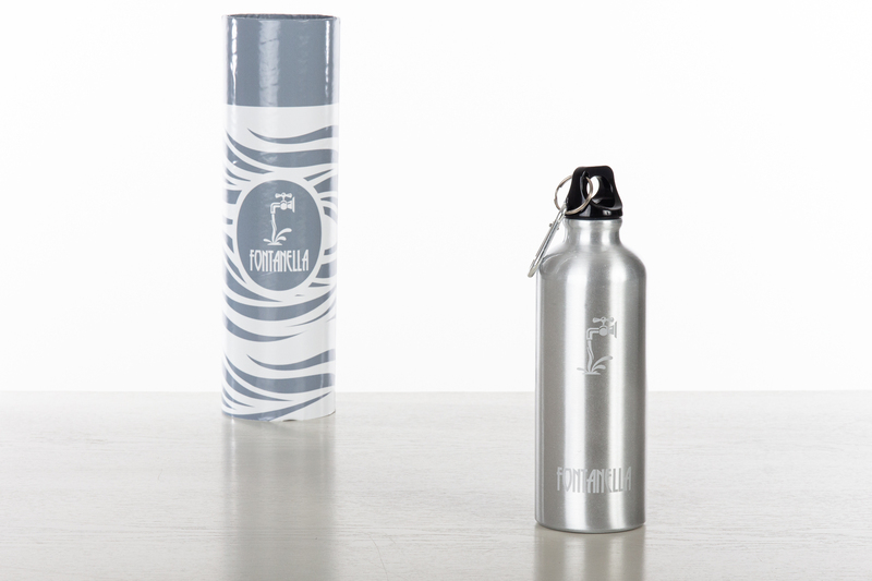 Bomboniere Nozze d'Argento Lombardia : Borraccia alluminio acciaio ecosostenibile Serie Fontanella h. 21 d. 6,6 cm. Il soggetto è ordinabile a gruppi di 24.